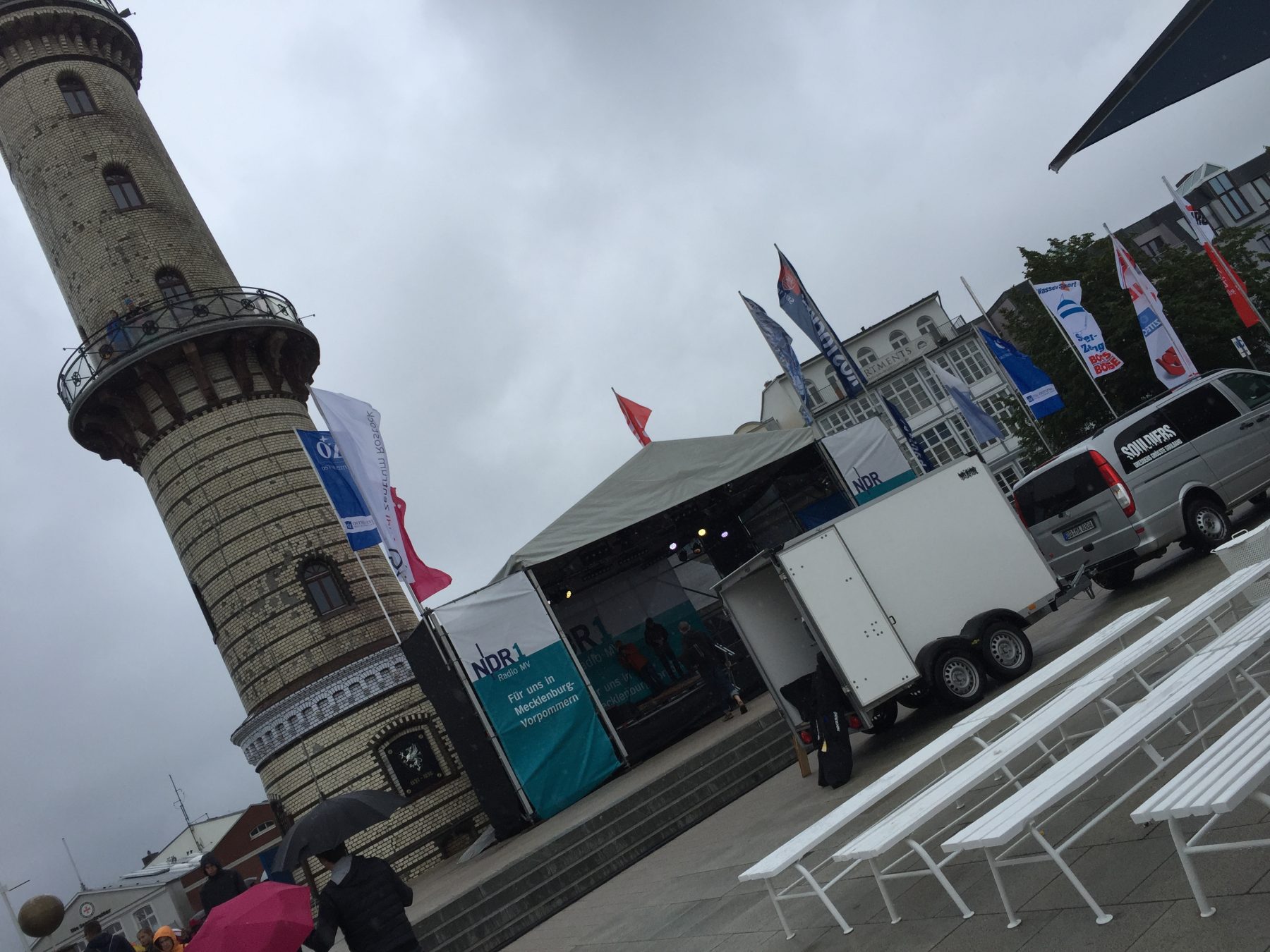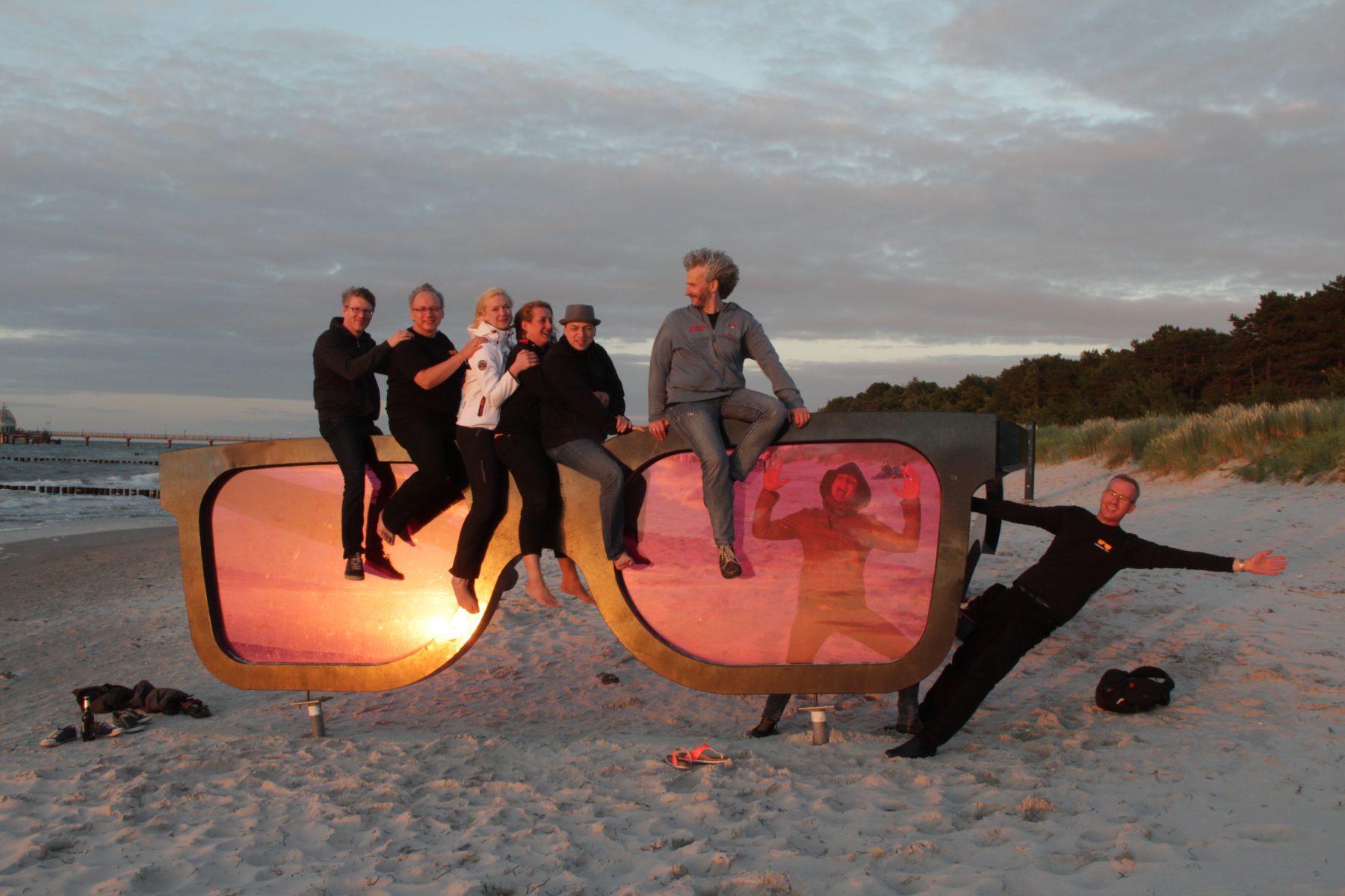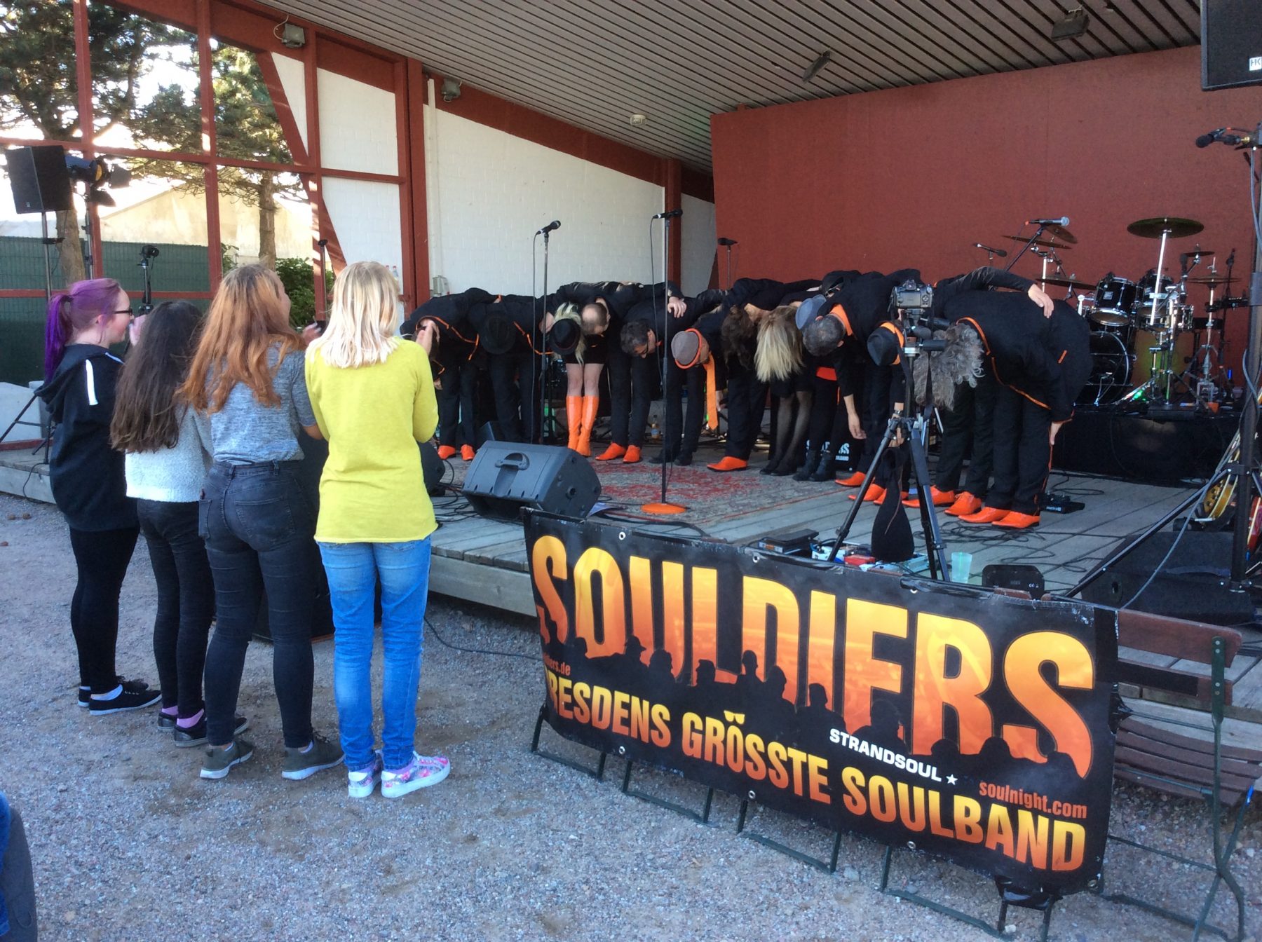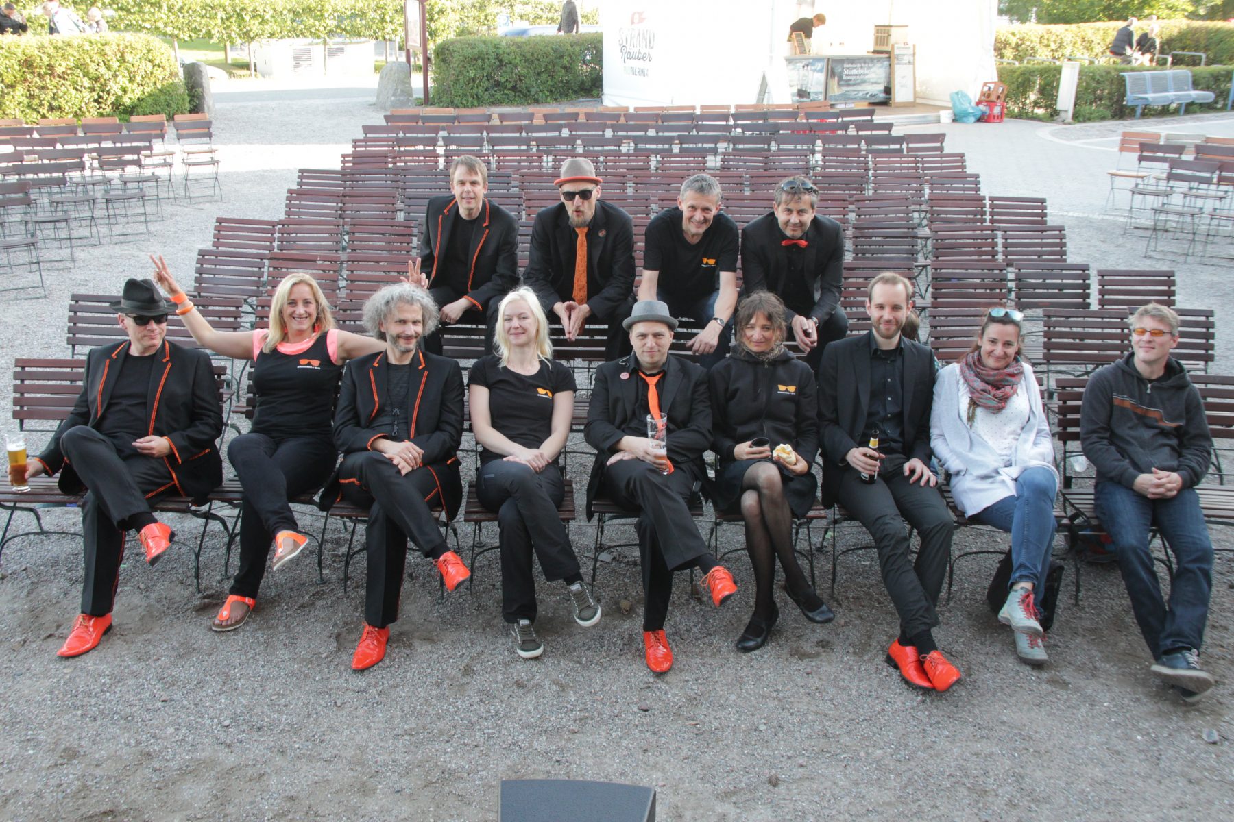 Olaf weiß, dass sein Kesselgulasch Leib & Soul zusammenhält, Romy nahm den durchweichten Geburtstag hin in entspannter Pose und Carsten entschloss sich spontan in Zingst mit Olaf die Tasten zu kreuzen. Nachdem wir am berühmten »das proben wir alles am Montag« Montag kollektiv fast garnix außer Schleuder-Uno-Uno gespielt hatten, folgte ein kreativer Dienstag, der viele neue Noten und etliche überarbeitete Setlisten aus dem Drucker zauberte. Gequirlte Moves und zahllose Background-Setups inklusive. Jetzt noch ein wenig die Haare geföhnt, Schlammbowle gemixt, den Nachtzug abgefangen am Stralsunder Bahnhof und die Posaune bei »My Girl« angefeuert, und dann ab auf die Fähre nach Hiddensee. Vitte, wir kommen!